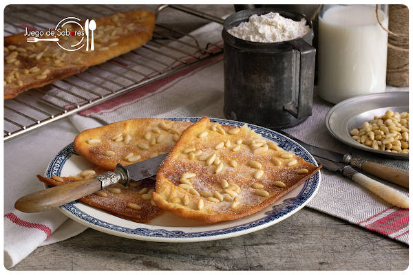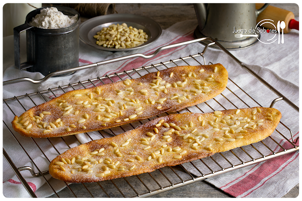 Pintar las cocas con aceite, poner encima los piñones escurridos y bien secos. Dejar reposar 10 minutos.