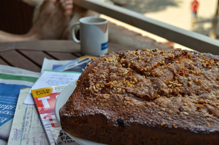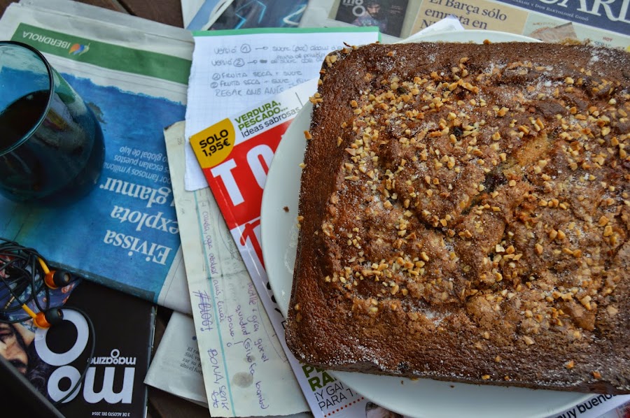 A parte de eso, esta coca es normal y corriente, jugosa, deliciosa y todo lo demás bueno y bonito que os pase la cabeza sobre un bizcocho.