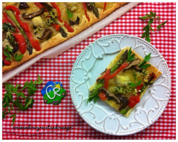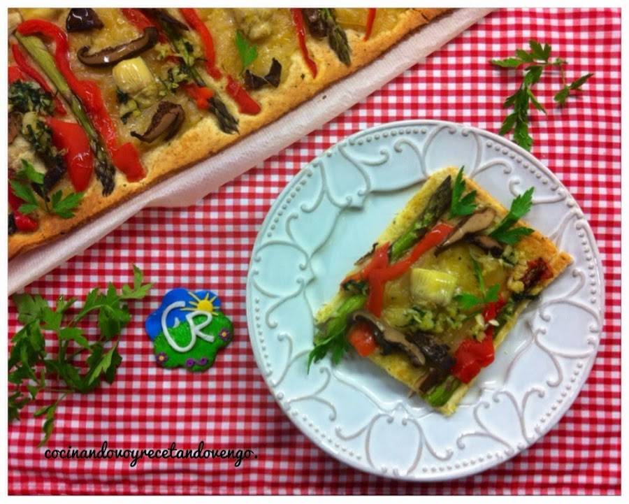 Hola a tod@s!! Hoy estamos paseando por las Islas Baleares, la receta elegida para este mes en el 8º Reto COCINAMOS CON REINA ha sido la deliciosa COCA y desde luego que es una deliciosa receta, fácil y rápida de hacer...en esta ocasión he variado las verduras que suelen usarse, también he pochado unas cebollas caramelizadas levemente, he añadido unos pimientos y alcachofas de lata y unos saludables y ligeros espárragos...además como todos los que me conocéis sabéis que me encanta enriquecer las masas, en esta ocasión le puse tomillo y hierbabuena...el resultado una "COCA CAMPERA, con un delicioso sabor a huerto.