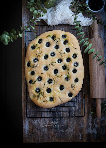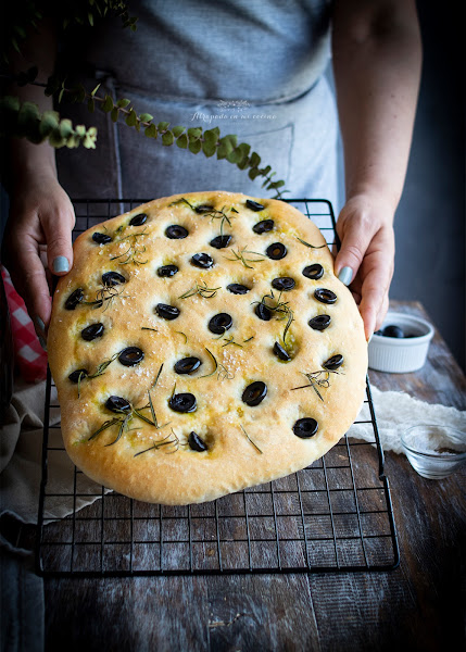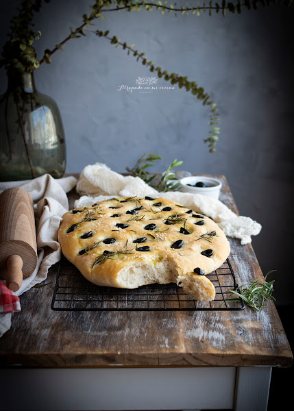 Es tiempo de preparar cocas, el verano ha llegado y San Juan nos trae las ganas de elaborar este tipo de panes salados tan típicos del Mediterráneo. En esta ocasión la hemos preparado con aceitunas negras y romero, una combinación deliciosa combina a la perfección con la masa que lleva de base. Es un pan para compartir, para poner en una mesa y comer a pellizcos .
