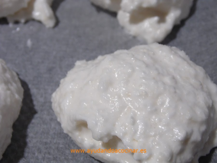 poner papel del horno en una bandeja e ir colocando montoncitos con ayuda de dos cucharas