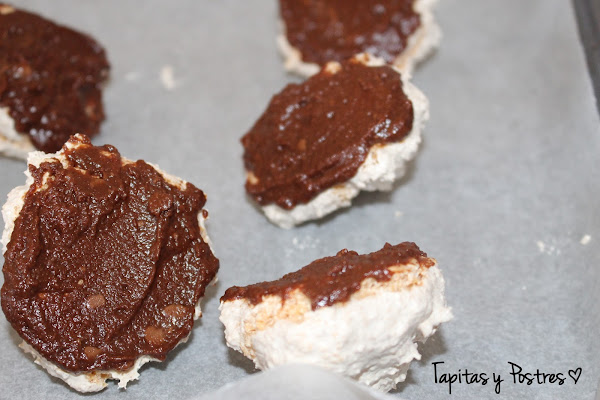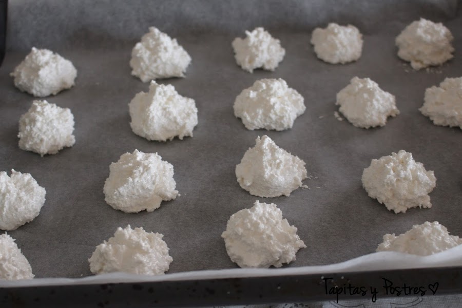 En una fuente con papel de hornear ponemos montones. Horneamos a temperatura baja.