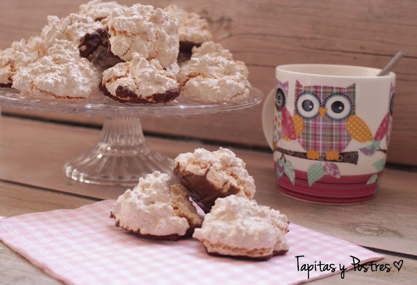 Derretimos el chocolate en el microondas unos 30 segundos aproximadamente. Cuando las cocadas estén frías, bañamos la base con el chocolate derretido. Dejamos boca abajo para que el chocolate se solidifique antes de consumir.