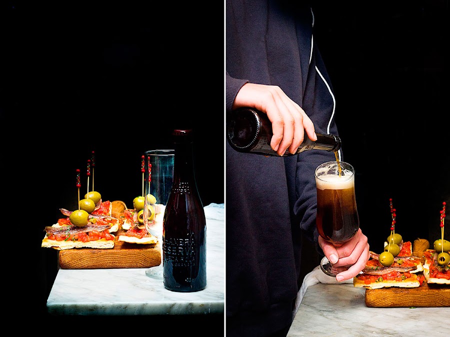 Como en tantas cosas, para mi el verdadero placer esta saber apreciar esos pequeños pero grandes momentos rodeada de la gente que quiero, por eso os propongo tomaros vuestro tiempo y disfrutar con la nueva creación de Cervezas Alhambra, rica en matices y sabores, de una belleza exquisita donde destacan sus tonos rojizos, su equilibrio perfecto entre la intensidad de la malta tostada de la cebada y la sutileza del maíz, además de una espuma consistente, sus notas aromáticas a manzana verde y un toque regaliz, la convierten en una cerveza gourmet, perfecta para adentrarse en el mundo del maridaje, como en éste caso acompañando a éstas cocas con sardinas ahumadas, tartar de tomate y encurtidos.