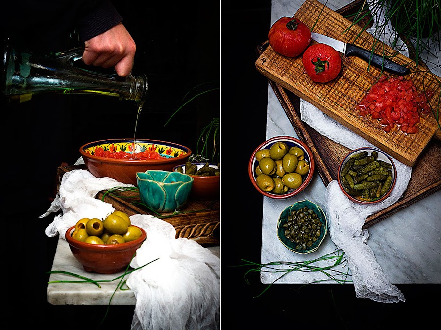 Añadimos las alcaparras y los pepinillos cortados finamente.