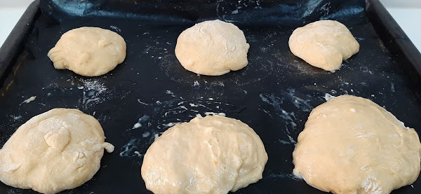 10.- Colocamos los bollos separados entre sí, en 2 bandejas de horno forradas con papel de hornear.