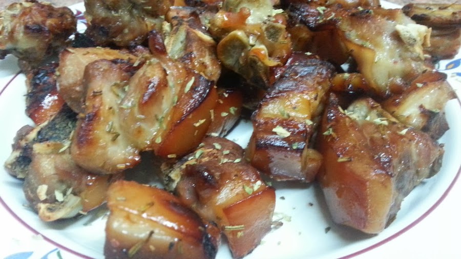 Ingredientes para dos: 1 kg de cochinillo en trozos sal romero tomillo
