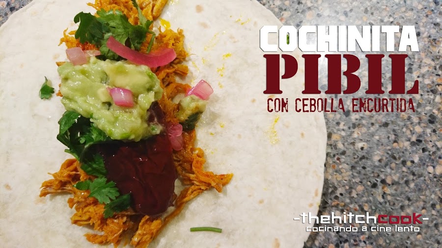 Como ya he dicho el proceso es largo (que no tedioso) porque hay que dejar macerando la carne de cerdo un día antes (muy recomendable para que coja los sabores) y luego necesitamos que el horno trabaje a destajo para conseguir esa melosidad cárnica que nos permita deshilacharlo sin esfuerzo. Lo acompañamos de una cebolla encurtida y un sencillo guacamole para irnos de viaje a la frontera mejicana, acompañados de Quentin Tarantino y Robert Rodríguez, que me dejan para la comparación gastro-cinéfila su gamberra y anárquica obra "Abierto hasta el amanecer". ¡Mandiles arriba!