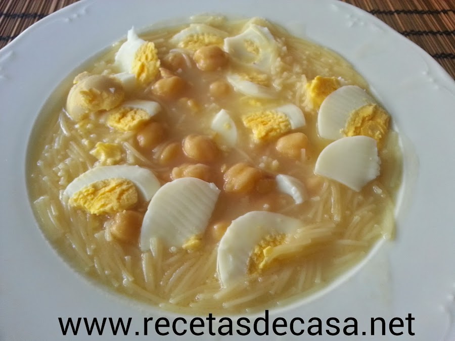 Servimos la sopa con unos pocos garbanzos y huevo duro para quien lo desee.