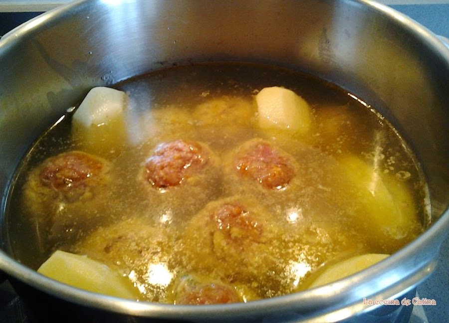 Mientras se cuece esto, sacamos la masa de las pelotas y vamos cogiendo puñaditos y formando las pelotas (el tamaño al gusto de cada uno).