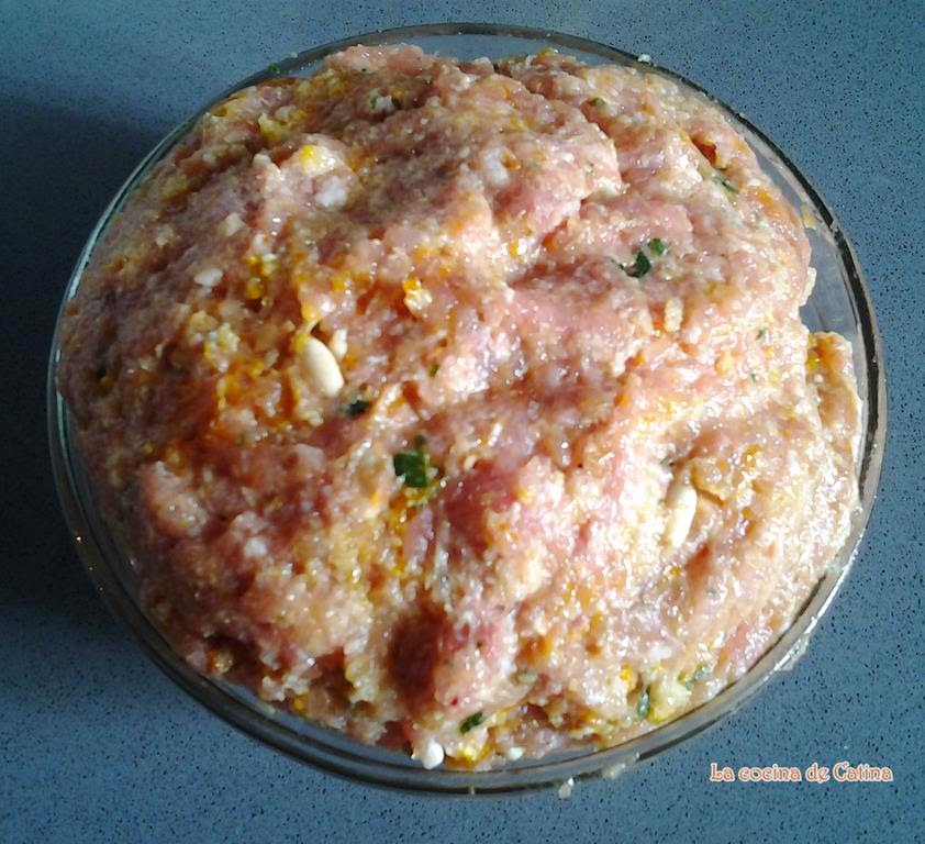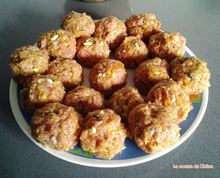 Preparación:Elaboramos las pelotas el día anterior de la siguiente manera: En tu carnicería pide que te piquen las dos clases ce carne junto con el embutido. Colocamos esta carne en un bol grande y añadimos el puñadito de piñones, la molla de pan desmenuzada, los ajos , el perejil y el azafrán picados, los 5 huevos y un chorrito de zumo de limón. Amasamos bien, tapamos con film y reservamos en el frigorífico para el día siguiente.