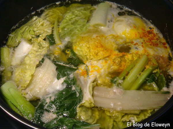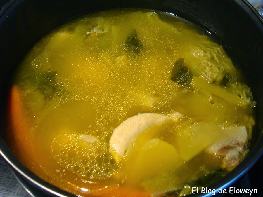 También hubo un pequeño error de cálculo. Pensé que me cabría todo en una olla y al final, como eran tantos ingredientes (creo que es la receta que con más ingredientes que he hecho en mi vida... jajaja), tuvimos que cambiar a una olla más grande. La segunda vez ya estaba yo preparada y salió bien. jajaja. Seguramente la receta se podría hacer de otra forma, pero os la pongo tal y como la hace mi madre.