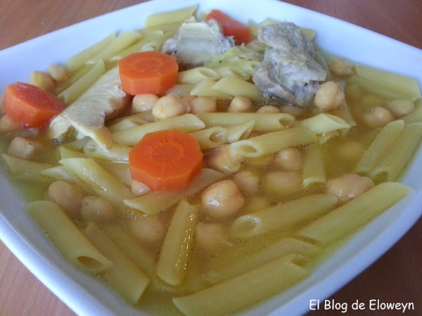 Una de las cosas que más recuerdo de cuando era pequeña es este cocido de garbanzos y macarrones que hacía mi abuela en casa. Siempre me ha gustado un montón. Por suerte, es una de las pocas recetas que mi madre aprendió de mi abuela. A mi abuela le encantaba cocinar y lo hacía muy bien, pero lamentablemente a mi madre no le gustaba, y cuando murió mi abuela se perdieron muchas de las recetas que hacía.