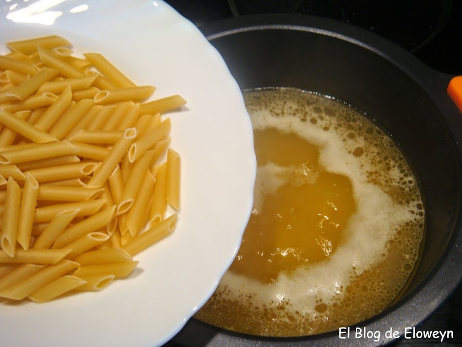 Hervir durante el tiempo que indique el paquete de macarrones.