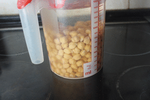 El día anterior ponemos en remojo los garbanzos con un poco de sal.