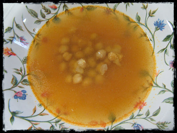 Primero, la sopa. En teoría, debería llevar sólo los fideos, pero, como veis, hay quien prefiere añadirle algunos garbanzos (e incluso, carne de pollo).