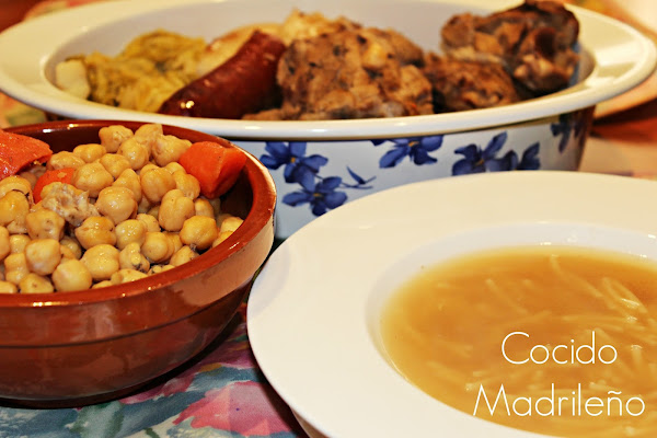 Es un plato contundente, típico de Madrid, y se sirve en tres vuelcos; el primero con garbanzos, verdura y patata, el segundo con la carne, y el tercero con la sopa de fideos.