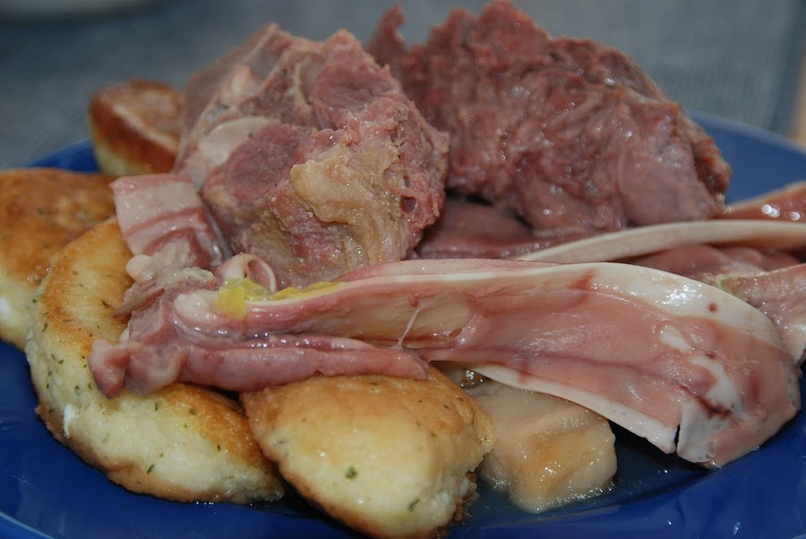 Recuerdo cuando era pequeña que mi abuela ponía el puchero con el cocido en la gloria a primera hora de la mañana y estaba cocinándose lentamente hasta la hora de comer. El puchero era de aquellos metálicos, con un baño de color granate y el tocino, procedente como todo lo demás de la matanza, se deshacía al untarlo en el pan. El tocino que se compra hoy en día es como goma. Por más que lo intentas untar vuelve a su posición y forma inicial.