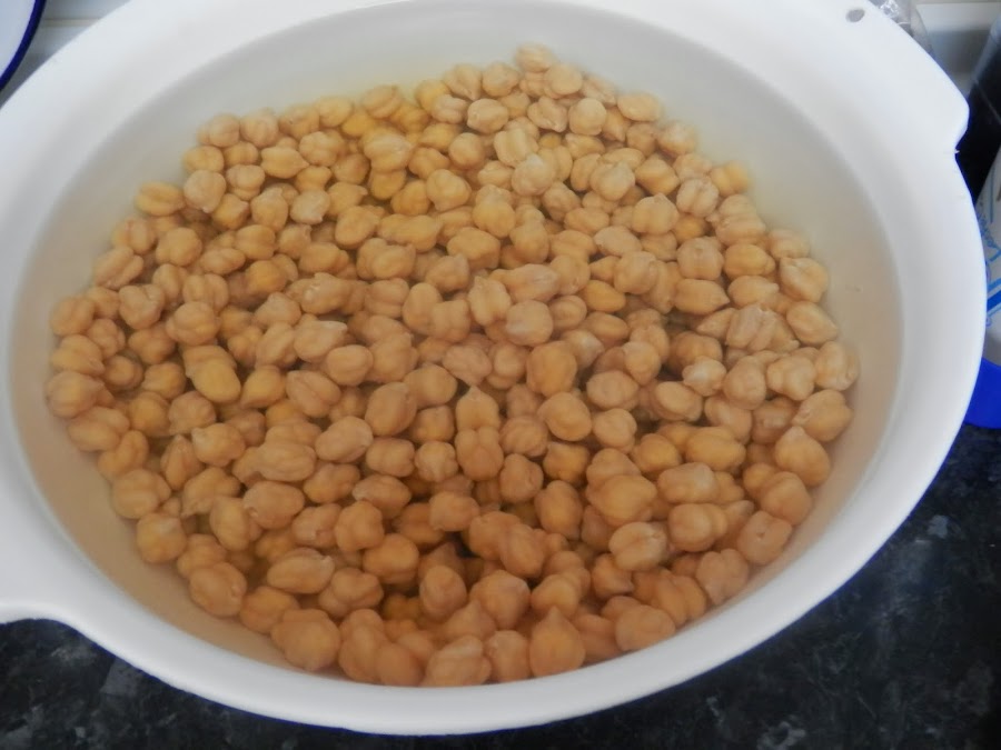 El día antes de hacer el cocido se pondrán en remojo los garbanzos con agua y un puñado de sal gorta.