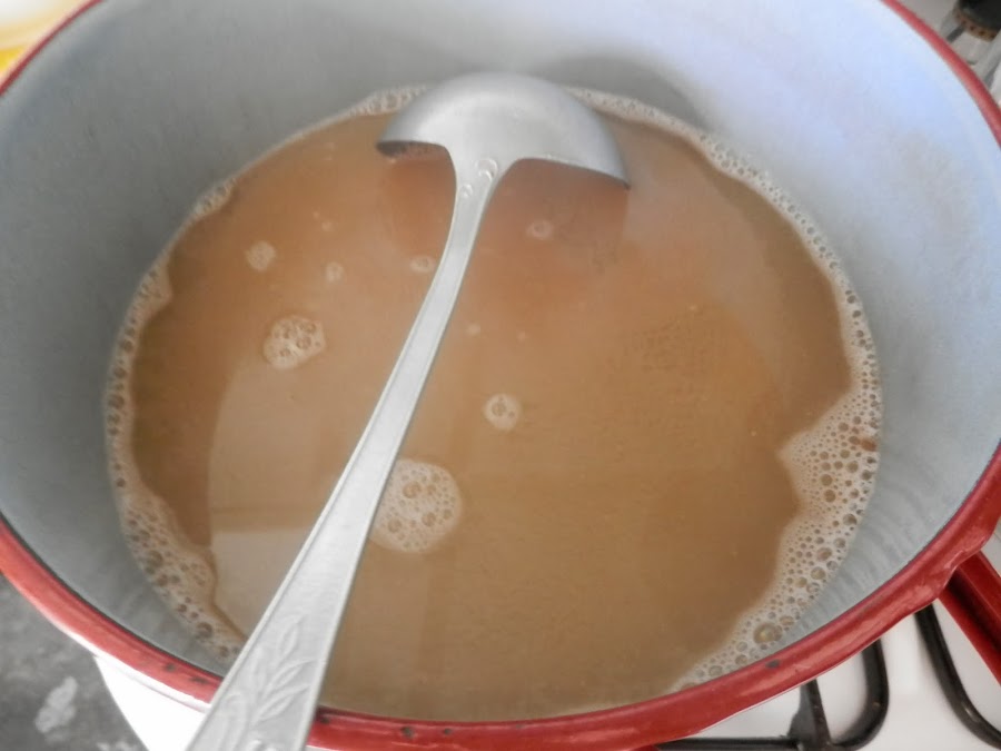 Se añade agua caliente hasta llegar al volumen de agua inicial que pusimos antes de cerrar la olla y dejamos cocer.