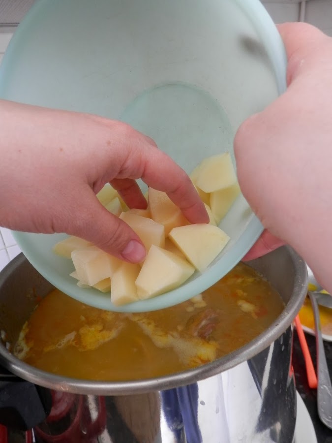 Volvemos a sacar caldo y dejamos cocer del todo las patatas.