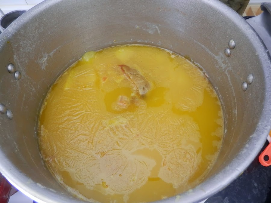 Es el momento de sacar el caldo. Podemos sacar hasta que las primeras carnes asomen por la superficie del caldo.