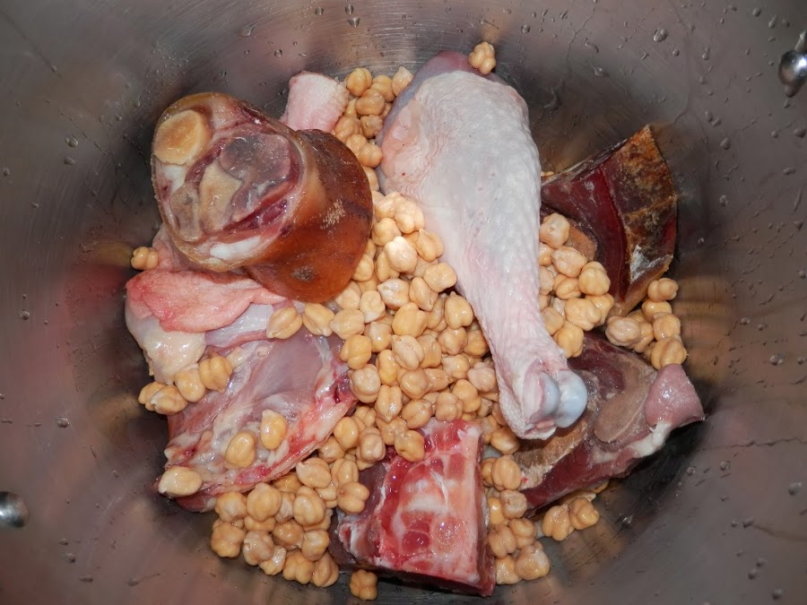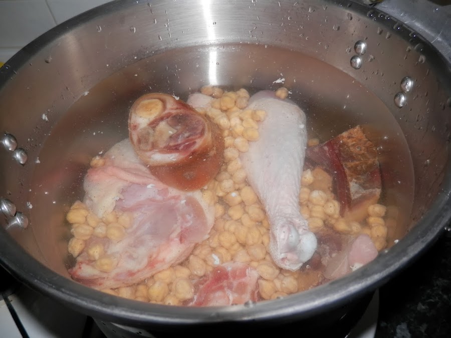 Hoy, después de unos días de merecido descanso en el pueblo, os traigo una receta laboriosa y un poco pesada de hacer pero que luego os sirve para tener comida para varias ocasiones: Cocido.