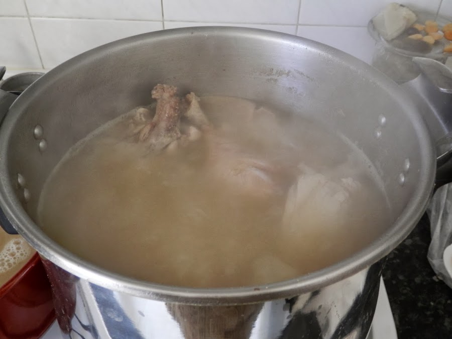 Si el hueso viejo (de zancarrón del jamón) tiene mucho tiempo (mucho tiempo llamémosle a un mes o así), lo herviremos para después rasparlo por fuera y que así se pueda ir el sabor a rancio que pueda tener.
