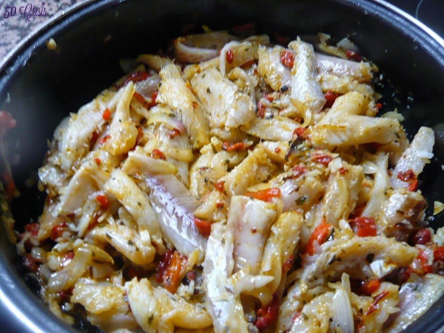 Dejamos cocer hasta que se consuma el caldo del tomate y el pescado.