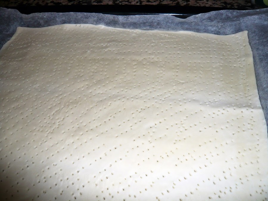 NOTA: Si al sacar las bases de hojaldre del horno se han subido un poco, no pasa nada. Cuando se hayan enfriado un poquito, que no os queméis, con las manos la aplastáis y ya se quedan planas.
