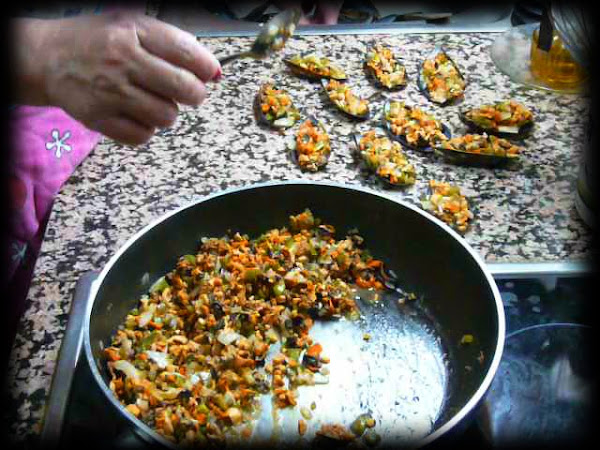 Hola de nuevo. Hoy vuelvo a empezar la semana con una receta de cocina, mejillones rellenos. Esta receta lleva en mi familia desde hace más de treinta años. Mi madre la sacó de un bar justo en frente de la iglesia donde me casé y desde entonces siempre que lo preparamos es una fiesta.