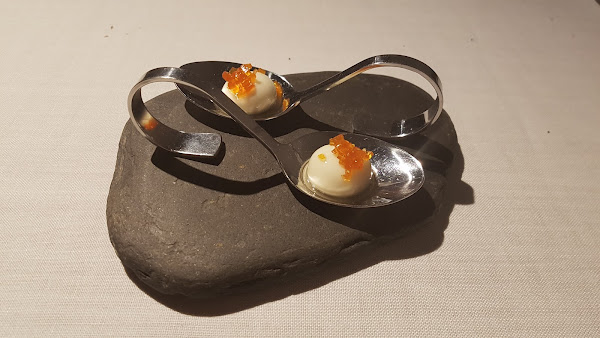 Cenar en una estrella Michelin no es muy distinto que cenar en alguno otro denominado pijo que tenemos en León, es verdad que el trato y la calidad del producto, son exquisitos pero por eso se distinguen a parte de una cocina con diversidad de sabores y técnicas, a las 22 horas estábamos allí para dejarnos cautivar por esa comida de calidad, lo que parecía que sería una cena rápida ya que los platos llevaban buen ritmo al final se fue a las 2 horas, la cual paso a relatar a continuación.