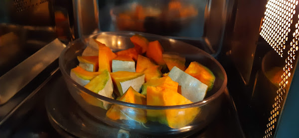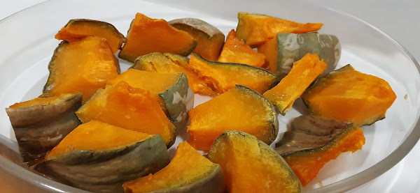 Estos días estoy utilizando mucho la calabaza tanto para hacer recetas dulces como saladas. La calabaza es una hortaliza de otoño e invierno, que tiene muchas propiedades y vitaminas y que intento integrar en mi día a día. Pero para las dulces necesito cocerla y una manera muy sencilla, rápida y limpia es hacerlo en el microondas. Una de mis cuñadas me regaló una calabaza espectacularmente grande y preciosa. Ya sabéis que la calabaza dura mucho y que la podéis congelar a trozos para utilizar en cualquier momento, tanto cruda como cocinada.