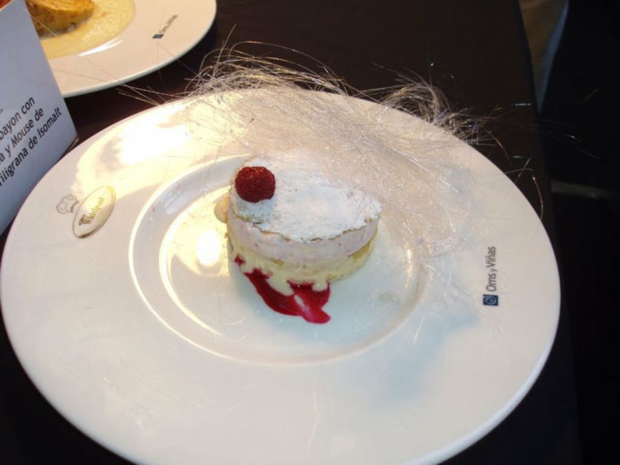 La presencia del ‘Pastel de Sayón con Phyladelphia y mousse de frambuesa y filigrana de Isomalt’, no dejó indiferente a nadie. Por otra parte, Lorena Kudari deleitó con una ‘Terrina de yogur con intxaursaltsa y compota de frambuesa’. El toque ‘lujoso’ vino de la mano del papel de oro que usó como adorno.