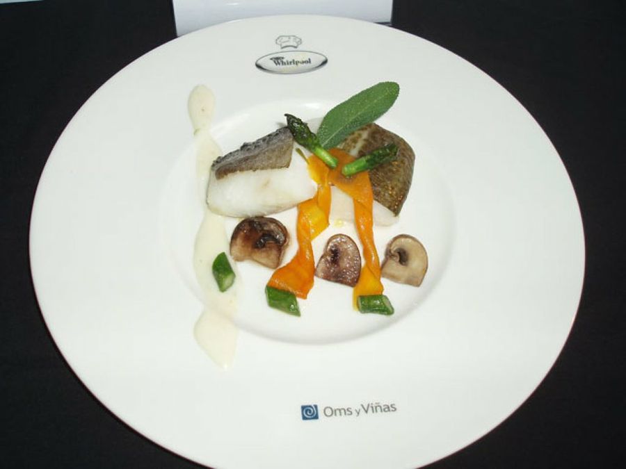 También cocinó un plato de pescado el representante de la Escuela de Hostelería de Sevilla, Guillermo Marín. En su caso, preparó un irresistible ‘Bacalao con salsa de limón y champiñones con verduritas’. El pescado cocinado en este tipo de microondas con un aspecto muy jugoso.