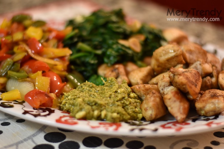 Si no sabéis cómo acompañar vuestra Carne De Pollo, he aquí una Receta de Pollo al Pesto Verde con Espinacas Salteadas con ajo y Verduras al Wok como Guarnición.