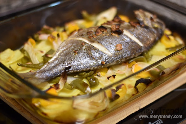 Empezamos por esta Dorada Al Horno Con Patatas. ¡Súper, fácil! Yo diría que es el plato perfecto para aquellas que, como yo, no soléis entrar en la cocina con asiduidad, ya que, quien realmente lo ha cocinado, ha sido el horno, no la menda Jajaja. ¡Ah! Y lo mejor de todo es que, el pescado y la guarnición de patatas con pimientos y cebolla, se cocinan casi a la vez.
