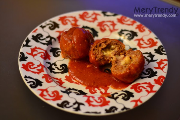 Otro plato tradicional, económico y muy fácil e preparar, son las Albónigas de carne picada rellenas de queso y salsa de tomate.