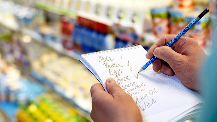 Como resultado del punto 2 y 3, nos sale el punto 4): la lista de la compra, que te saldrá por deducción, ya que es la diferencia entre los ingredientes que tienes y los que te faltan para las comidas/cenas de la semana. Aprovecha este momento para revisar tu fondo de despensa (frigorífico y congelador incluidos), ver qué productos tienes empezados, cuáles te faltan, si tienes alguno caducado o que se haya estropeado…Cuando vengas de la compra, los nuevos ponlos detrás y saca a primera fila los más antiguos y/o empezados.