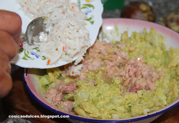 Mezclamos bien con la lechuga que abremos picado previamente muy finita.