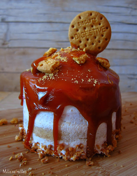 - Preparamos el toffe. Sacamos la tarta del congelador y la cubrimos. Con el contacto helado de la tarta se queda esos chorretes geniales si la tarta no esta bien bien congelada no se quedaran tan chulis.