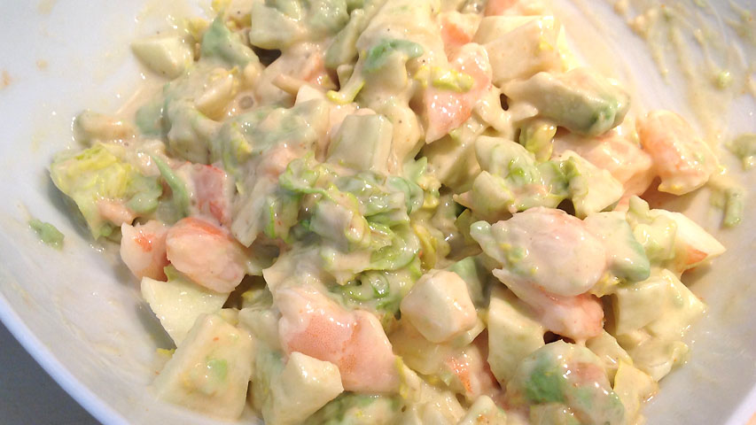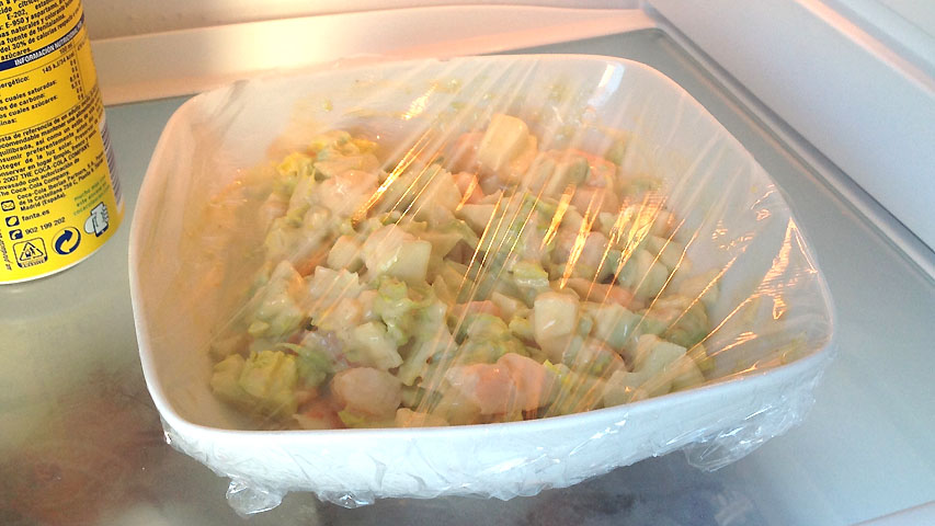 El cóctel de langostinos es un plato que se ha de servir bien frío. Por eso me gusta tenerlo en nevera al menos una hora antes de servir.