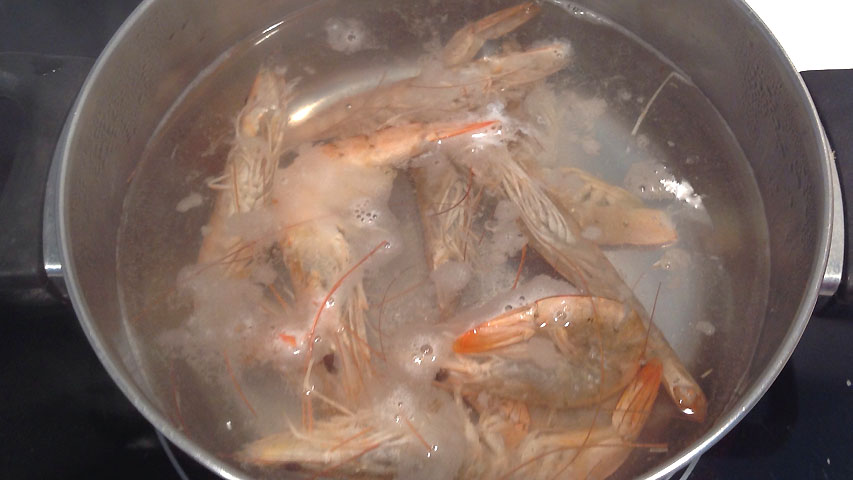 Para cortar la cocción se sacan los langostinos a agua helada con la misma proporción de sal que la de cocción (30-40 gr de sal por litro de agua).