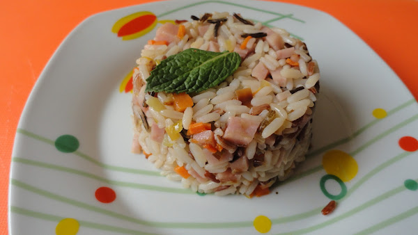 Cortamos el rape en medallones o en dados regulares. Los cocemos en muy poquita agua con sal junto con las colas de langostinos. También los podemos hacer al vapor en una vaporera al fuego o en el microondas. En cualquier caso serán suficientes entre 3 y 5 minutos de cocción porque el pescado no debe sobrecocerse. Lo reservamos y dejamos que enfríe.