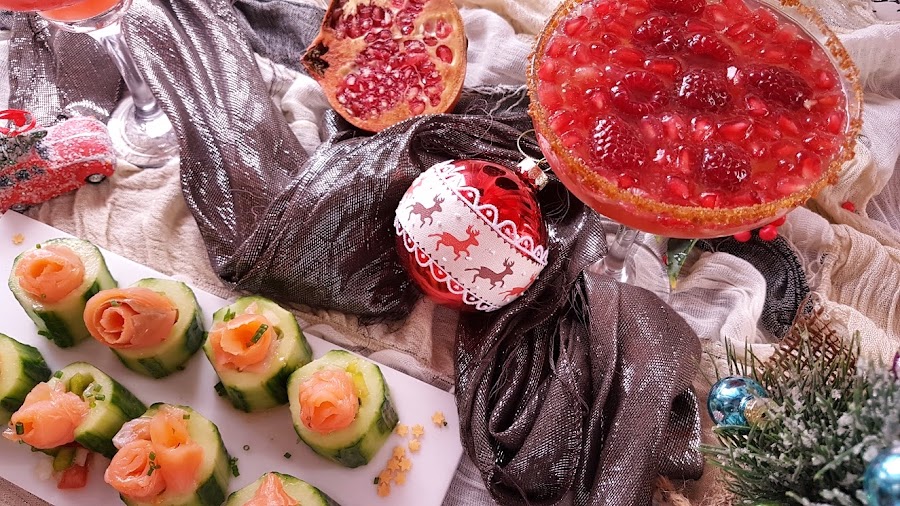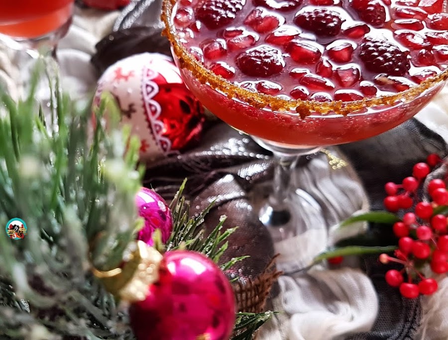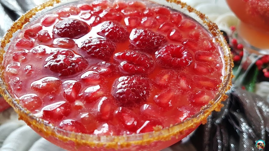 Para acompañar los platos dulces o aperitivos de los días de fiestas en general, podemos ofrecer a nuestros invitados un refrescate y bonito cóctel de cava con frambuesas y granadas.