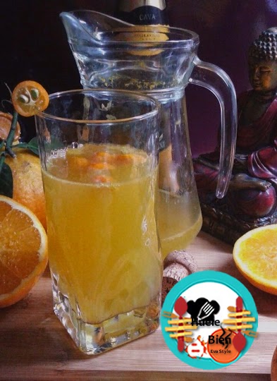 1.- Ponemos té de rooibos en agua helada durante 10 minutos. En una jarra de agua grande ponemos el cava, el Grand Marniert, el zumo de naranja exprimido, las flores de azahar, los kumquat cortados en rodajas, la infusión helada y el edulcorante. Removemos todo muy bien. Servimos frío y decoramos la copa con una rodaja de kumquat.