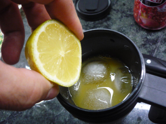6.- Vertemos el contenido de la coctelera y decoramos con una rodaja de naranja y otra de limón.