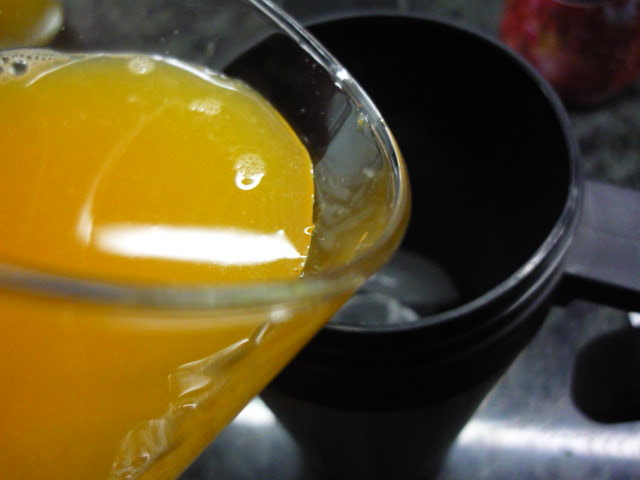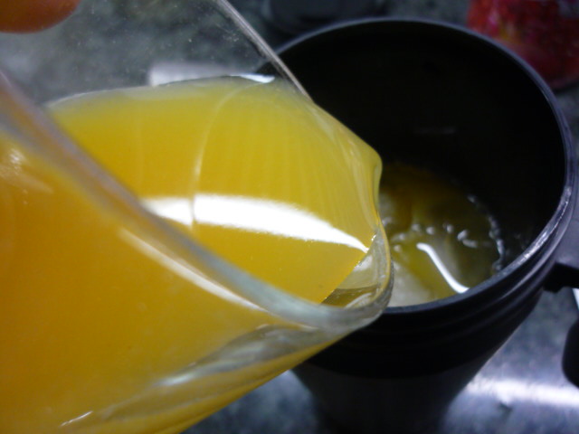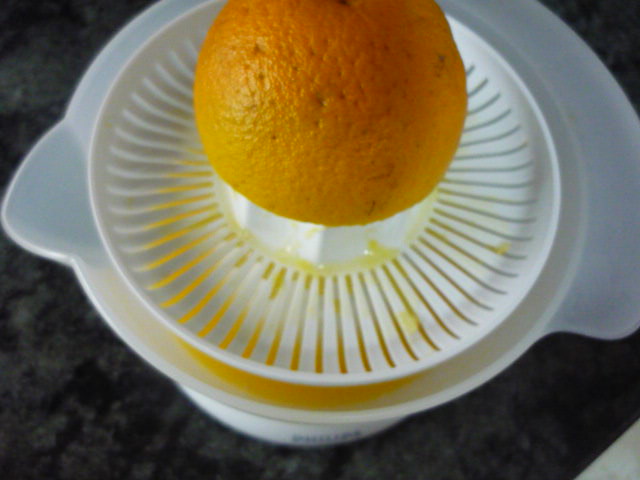1.- Exprimimos las naranjas para obtener el zumo necesario.