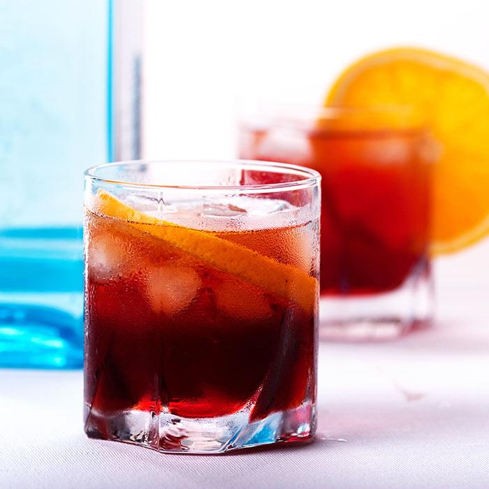 En un vaso old fashion, colocar los tres ingredientes y agregar hielo en cubos grandes. Mezclar suavemente y decorar con una rodaja o twist de naranja.