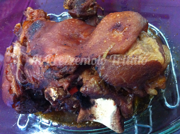 Comprobamos que el codillo este bien cocido y lo pasamos a una fuente para horno. Previamente habremos puesto el horno a precalentar a 180ºC. lo ponemos 10 min. y lo damos la vuelta para que se dore por los dos lados.